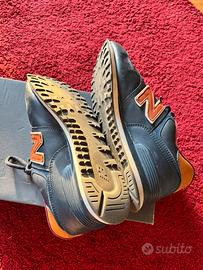 Vendo scarpe New Balance 574 in pelle blu, taglia 44 in ottime condizioni.