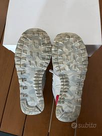 Vendo scarpe New Balance 574 da uomo – numero 42. Usate pochissimo, in ottime condizioni. Le vendo perché il piede è cresciuto e non mi stanno più. Colore beige/grigio con logo blu. Scarpe molto comode e ancora in ottimo stato.
