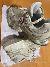 New Balance 9060. Numero europeo 39.5 misura 24.5 cm. Colore Beige e rosa. . Chiusura con lacci. Intersuola ABZORB, ammortizzante e molto leggera. Indossate solo un paio di volte. Vendo per inutilizzo causa regalo sbagliato per mezzo numero troppo piccolo rispetto al mio piede. Senza scatola perché buttata.