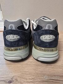 Lanciate originariamente nel 2008, le 993 riunivano gli elementi dei due precedenti modelli della serie 99X, le 991 e le 992, in un unico design aerodinamico e perfezionavano l'ammortizzazione dell'intersuola ABZORB. La raffinatezza tecnica delle Made in USA 993 è caratterizzata da una tomaia in mesh nei colori classici sovrapposti a un suede di prima qualità, su un'intersuola a due colori. Le calzature New Balance Made in USA contengono un valore domestico pari al 70% o più. Made in USA rappresenta solo una parte delle vendite di New Balance negli Stati Uniti. Indossate una sola volta, scatola originale New balance ma non di questo modello, numero 44, cm 28.