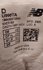 Vendo bellissime New Balance 998 prodotte negli Stati Uniti, nuove mai usate, come dimostra il cartellino di autenticazione presente su entrambe le scarpe.