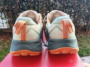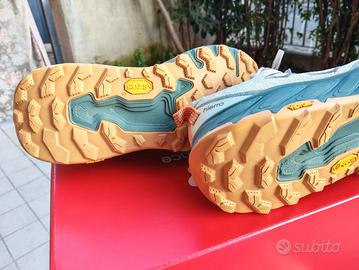 Scarpa usata ma in ottimo stato, presenta delle piccole imperfezioni/scolorazioni nelle scritte come la linguetta (vedi foto) e internamente dove poggia la pianta del piede giustamente perché utilizzate e dopo 2 lavaggi.