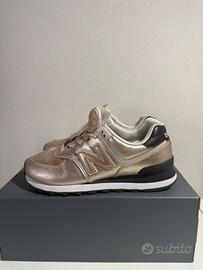 Vendo scarpe New Balance oro rosa numero 37.5. Utilizzate poche volte ma presentano alcuni segni di usura. Vendute con scatola originale.