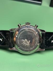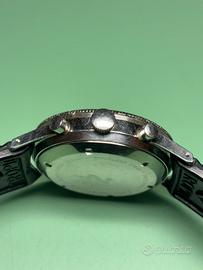 Tasti a pompa e calibro Landeron 39 con ruota a colonna, appena revisionato (vetro nuovo di zecca). Cassa 39 mm e bracciale tropic in gomma (con un piccolo taglietto).