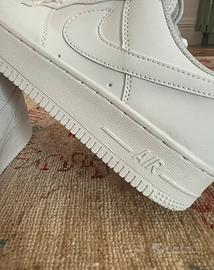 Le Nike Air Force 1 07 Classic Low-Top in pelle, unisex, sfoggiano l'iconico logo Swoosh. La pelle bianca è semplice ed elegante. "Anche una vecchia Ferrari è sempre una Ferrari" descrive perfettamente queste Air Force 1. Nuove di zecca con scatola, perfette. Spedizione entro 1-3 giorni.