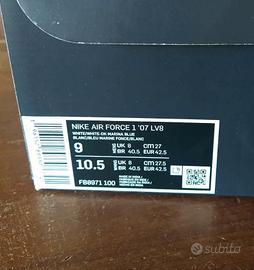 Vendo un paio di Nike Air Force 1 '07 LV8 in colorazione giallo senape con dettagli grigi, misura EUR42,5 (UK8 – CM27) – perfettamente compatibile con uomo o donna. Acquistate nuove e usate pochissimo: si notano solo minimi segni di utilizzo sulla suola come evidenziato nelle foto.