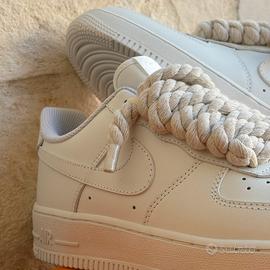 Nike Air Force 1 con lacci a corda, compresi di lacci normali. Numero 41, bianche. Nuove e MAI utilizzate. Consegna in 24/48h 📦