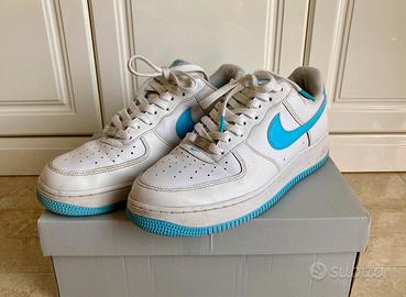 Scarpe Nike Air Force 1 con dettagli azzurri.