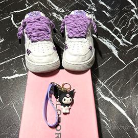 💜 NIKE AIR FORCE 1 CUSTOM VIOLA- EU39 – PEZZO UNICO 💜 Queste non sono semplici Air Force… sono custom fatte a mano con uno stile che non passa inosservato 🔥 ✨ Dettagli unici: • Lacci all’uncinetto fatti a mano 🧶 (super particolari) • Swoosh viola + cuciture “XXX” abbinate • Charm incluso per un tocco aesthetic 🖤💜 • Design clean ma super originale 👟 Condizioni: usate ma tenute bene (normali segni, niente di evidente) 💎 Perfette per outfit streetwear / Y2K / aesthetic ⚠️ PEZZO UNICO – impossibile trovarne altre così 🚀 Spedizione veloce
