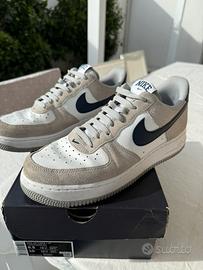 Vendo scarpe Air Force 1 ‘07 numero 42 perfette come da foto colore bianco beige blu in pelle causa modello non idoneo al mio piede magro. Usate due volte