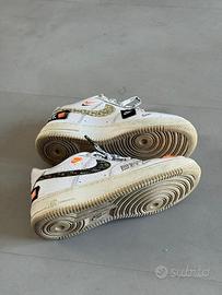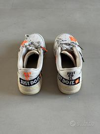 Vendo Nike Air Force 1 “Just Do It” Pack, numero 36, in perfette condizioni. Modello speciale con dettagli arancioni, swoosh in fantasia e lacci personalizzati “Just Do It”.