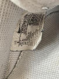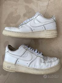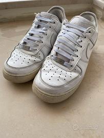 Scarpe Nike air force 1. Scarpa basket da ginnastica bianca. Scarpe bianche misura numero 41 (ideale per chi veste un 42). Le scarpe sono state riparate e possono essere ancora usate. Lacci elasticizzati. Unisex (uomo/donna).