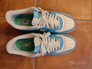 Vendo Nike Air Force 1 Low '07 Aquarius Blu Vapor Verde taglia 43. Originali, usate poco, ottimo stato.