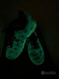 Vendo questo paio di scarpe perfette per ogni esigenza distinguendosi dalla massa ma soprattutto adatte per un utilizzo notturno data la sua particolare fosforescenza e per Hallowen🎃 Le vendo causa inutilizzo, sono state utilizzate solo 2 volte, purtroppo non possiedo la scatola originale che è stata persa.Taglia 38.5 In privato posso mandare ulteriori video