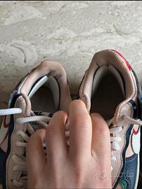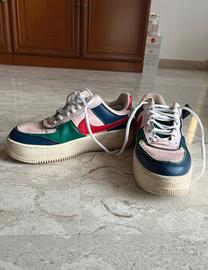 Ancora belli i colori ma rattoppate sul tallone all’interno, usurate in alcuni punti