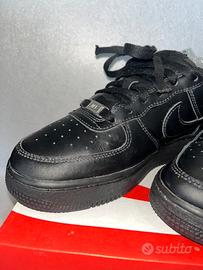 | Condizioni Ottime | No Box Metto in vendita un vero must-have di ogni collezione: le Nike Air Force 1 Low nella colorazione iconica Triple Black. Un classico intramontabile, perfetto per qualsiasi outfit grazie alla sua linea pulita e alla resistenza della pelle premium. Dettagli dell’articolo: • Modello: Nike Air Force 1 '07 Low • Colorway: Black/Black/Black (Triple Black) • Taglia: 37.5 • Condizioni: 8/10. Le scarpe sono state tenute con cura. Presentano le normali e leggere pieghe d'utilizzo sulla punta (toe box) e sul tallone, tipiche della pelle AF1, che non ne compromettono lo stile o il comfort. Suola ancora con ottimo grip. • Accessori: Inclusi i caratteristici dubrae metallici "AF1" originali e lacci neri in perfetto stato.