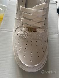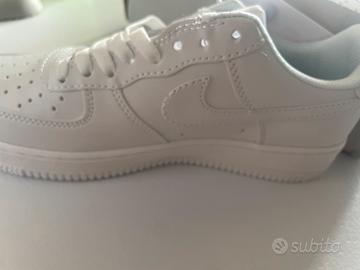 • Tomaia in pelle bianca di alta qualità • Suola in gomma bianca con battistrada classico • Logo Nike Swoosh bianco in rilievo • Air cushioning visibile sul tallone • Perforazioni sulla punta per traspirabilità