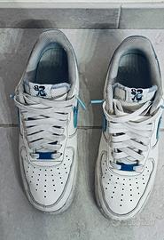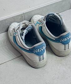 Vendo scarpe NIKE Air force 1, misura 44 Europa, 10 U.S., colore bianco con logo azzurro-avio.