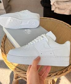 Vendo Nike Air Force 1 total white, taglia 42, nuove. 100% originali, con scatola. Perfette per outfit casual. Spedizione 👍