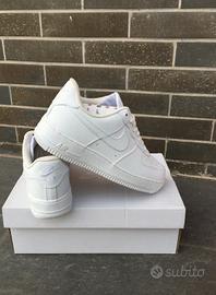 Vendo scarpe Nike Air Force 1 bianche, taglia 44, nuove. Con scatola originale, comode e facili da abbinare, perfette per l'uso quotidiano.