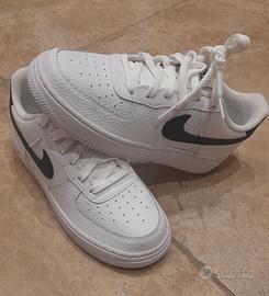 Nike air force one ORIGINALI 100%, bianche logo nero. Numero36,5, vendo causa regalo numero errato. Per qualsiasi chiarimento e ulteriori foto contattatemi.