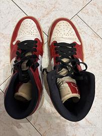 Nike Air Jordan 1 Mid, base bianca, rossa e nera. Prima edizione.