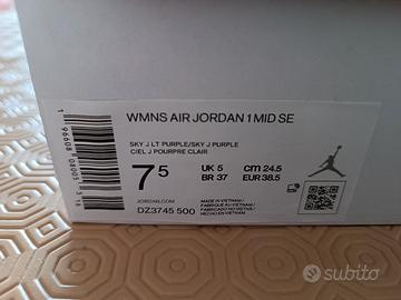 Nike air Jordan 1 mid Eur 38.5 buone condizioni con scatola originale come da foto colore lilla