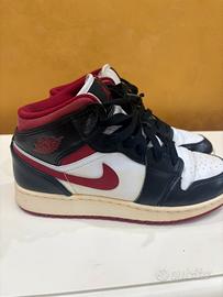 Vendo splendide Nike Air Jordan 1 Mid nei classici colori bianco, nero e rosso Un modello intramontabile, perfetto per chi ama lo stile streetwear e vuole distinguersi con un’icona del brand Jordan