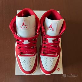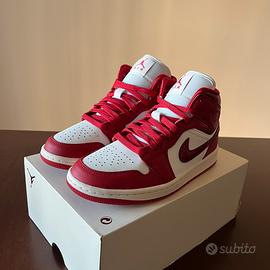 Vendo Nike Air Jordan 1 Mid in colorazione rosso e bianco con dettagli Swoosh in texture snake/crinkled Complete di scatola originale Jordan. Caratteristiche: ∙Modello: Air Jordan 1 Mid ∙Colore: Gym Red / White ∙Dettagli Swoosh con texture in rilievo ∙Tomaia in pelle e materiale sintetico ∙Suola bianca in ottimo stato ∙Scatola originale inclusa Condizioni: nuove, mai usate, con scatola originale Taglia: EU 37,5 US6,5