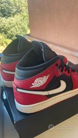 Iconiche, grintose e senza tempo. Queste Jordan 1 Mid sfoggiano la storica combinazione di colori rosso, nero e bianco, simbolo di stile streetwear e basket.