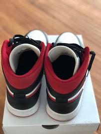 Vendo scarpe originali Nike Air Jordan 1 Mid taglia 42,5. Ottime condizioni, usate solo 2-3 volte. Colore bianco/nero/gym red.
