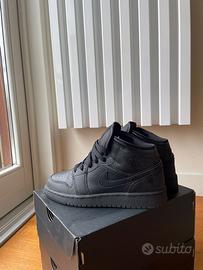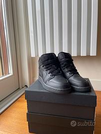 Nike Air Jordan 1 Mid Triple Black in pelle nera, donna, 37.5, ottime condizioni.
