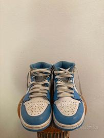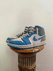 Vendo queste Nike Air Jordan 1 Mid University Blue - Grey da ragazzo/uomo. In ottime condizioni, senza la scatola originale.