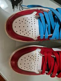Nike Air Jordan 1 Retro High Fearless UNC Chicago. TAGLIA EU 41 - UK 7 SCARPE ORIGINALI complete di altri lacci etc etc ma senza scatola (danneggiata e gettata) Condizioni Discrete, scarpe usate, dettagli in foto.