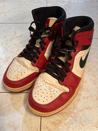 Nike Air Jordan 1 Retro High OG nella classica colorazione "Chicago". Usate ma condizioni ottime. Lunghezza piede 28,5 cm - altezza gambale cm 12 - numero 41. Unisex. Spedizione veloce Ritiro in zona #airjordan1 #sneakers #scarpedaginnastica #airjordan #unisex #nike #airjordan1retrohighog #chicago #red #white #black #highsneakers