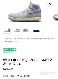 Nike air jordan 1 zoom cmft 2 grigio viola, tg 43, euro 80