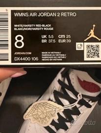 Nike Air Jordan 2 Retro OG Chicago 8-15 bianche varsity rosso nero DX2454-1 Originali mai usate perché acquistate con numero errato unisex