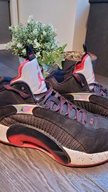 Vendo scarpe Jordan XXXV da basket, originali, in buone condizioni generali. Modello di colore nero, bianco e rosso, numero 45. Usate ma ancora in buono stato, perfette per chi cerca un paio di Jordan autentiche a un prezzo accessibile.
