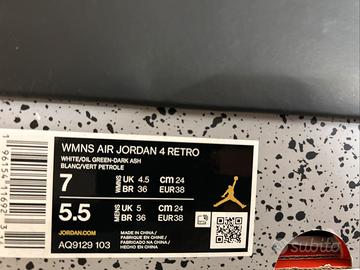 Nike Air jordan 4 Bianco Verde, Size 38 usate foto reali. Usate pochissimo. Con scatola originale.