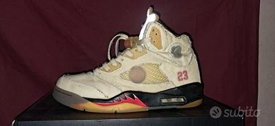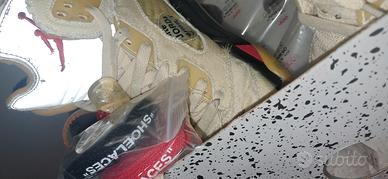 Nike Air Jordan 5 Retro Off White, size 9, TG 42,5, Con all'interno lacci neri e rossi, Usate qualche volta ma praticamente nuove