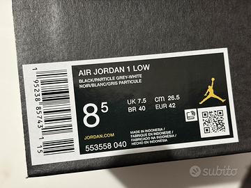 Nike Air Jordan One Low, originali, colore Grey White, misura EUR 42. Ottime praticamente nuove comprese di scatola. Vendo a 40€.