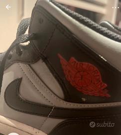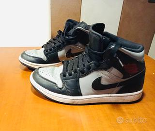 Scarpe air jordan nere grigie e marchio rosso . Taglia 40 con scatola ed in buone condizioni .modello Air Jordan 1MID.