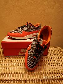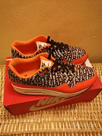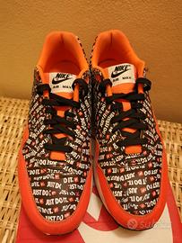 Nike Air Max 1 "Just Do It" Premium nella versione arancio. Scarpe da collezione ormai introvabili, indossate una volta e in condizioni pari al nuovo. Ovviamente originali. Complete della loro scatola originale. I rarissimi esemplari nuovi ancora in vendita quotano oltre i 200 euro
