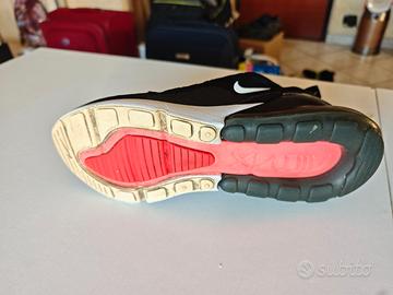 Colore nero con dettagli bianchi e centro suola rosa, lacci giallo fosforescente, con suola Air Max ammortizzata.