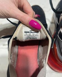 Vendo un paio di Nike Air Max 270 originali, una delle silhouette più amate per comodità e stile urban. Questo modello presenta una base nera con dettagli grigi e la celebre unità Air oversize in un vivace rosso ciliegia. Caratteristiche principali: Modello: Nike Air Max 270 (Codice prodotto: 943345-013) Taglia: 40 EU / 7Y US / 6 UK / 25 cm Colore: Black / White / Anthracite / Solar Red Stato: Buone condizioni generali. La tomaia è integra e la bolla d'aria è perfettamente gonfia e funzionante. Sono state amate e usate, ma hanno ancora molta strada da fare! Dettagli aggiuntivi: Design: Leggere e traspiranti grazie alla tomaia in mesh. Comfort: L'ammortizzazione Air a 270 gradi offre un supporto incredibile per l'uso quotidiano. Nota: Come visibile dalle foto, presentano normali segni di usura dovuti all'utilizzo (visibili soprattutto sull'intersuola bianca).