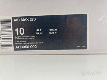 Vendo Nike Air Max 270 originali, colore nero/bianco (Black/Anthracite/White), come da foto.