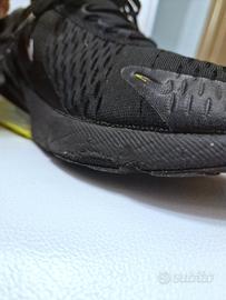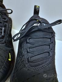 Nike Air Max 270 originale...Il tessuto è perfetto intatto, privo di buchi o simili, lacci e asole perfetti... Essendo usate hanno le scritte sbiadite e parte della suola esterna inferiore usurate come da descrizione fotografica.