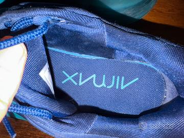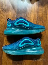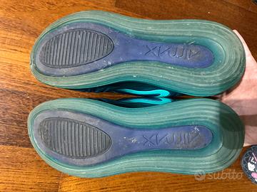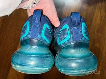 Nike Air Max 720 colore Blue Void / Court Purple / Spirit Teal n43. Usate poco. lcuni segni di usura visibili in foto. Tenute bene e indossate da una ragazza. Vendo perché post incidente purtroppo la scarpa destra mi va stretta.