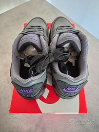 Vendo Nike Air Max 90 PRM colorazione nero/grigio/viola in misto pelle alcantara, con doppio laccio stringa di colore nero. Nuove, mai indossate nemmeno per prova. Collezione 2025/2026. Misure effettiva: EU 42 UK 7,5 US 8,5 10 BR 40 CM 26,5 27