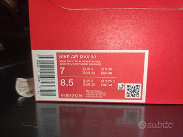 Vendo per regalo errato un paio di Nike Air Max 90 originali, taglia 40, colore grigio con dettagli viola.